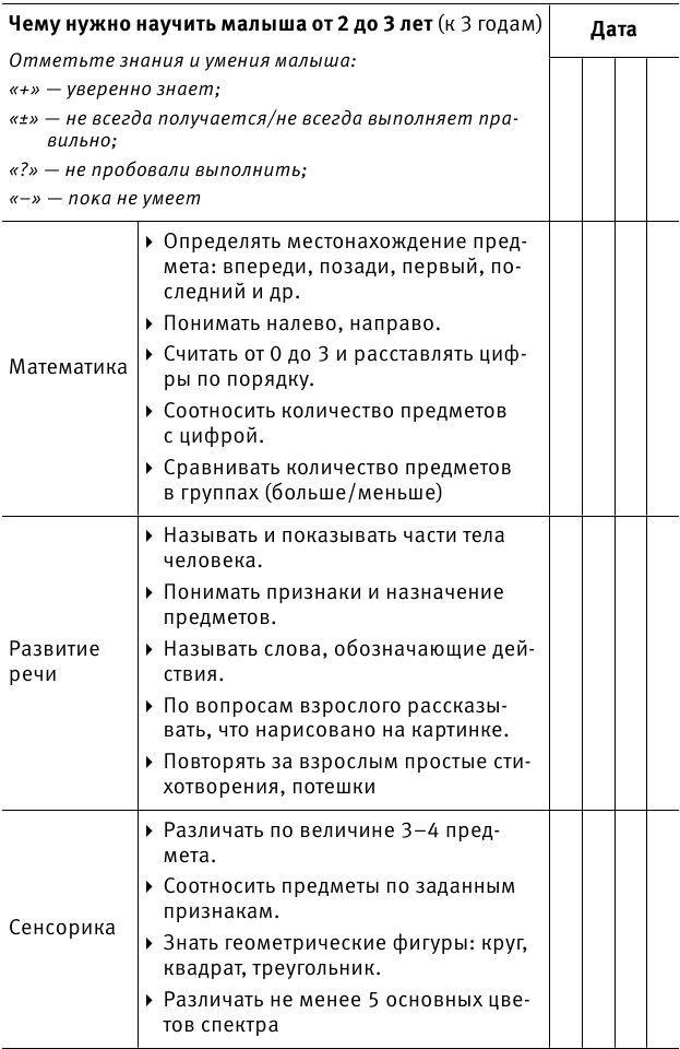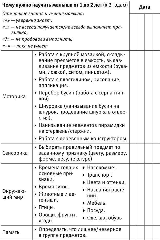 Сверяйте, чему новому малыш научился, примерно раз в 2–3 месяца (для удобства в таблице несколько столбцов).
