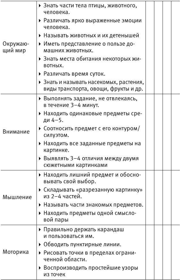 Ниже в таблицах представлены рекомендации к уровню интеллектуального развития детей по возрастам.