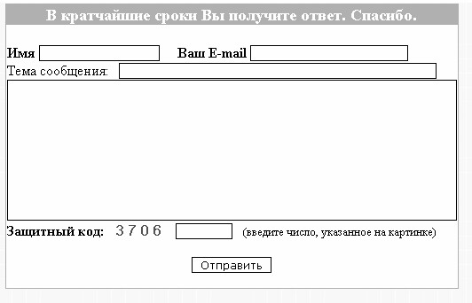 Рис. 1.1. Пример формы для отправки сообщения на странице Контакты
