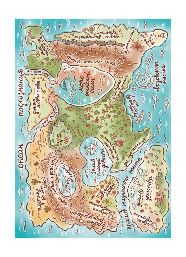 Предлагаю тебе совершить погружение в свой внутренний мир и ощутить на себе все прелести психодайвинга. Чтобы разобраться во всём, что происходит внутри тебя, и разложить всё по полочкам, ты можешь опираться на Карту Внутреннего Мира, которая отражает все самые жизненно важные процессы, через которые проходит любая женщина.