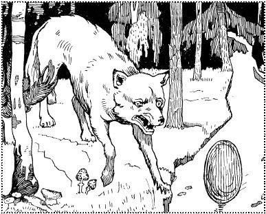 – Ах ты, серый волк! Для чего станешь ты понапрасну ломать об меня свои старые зубы? А ты лучше стань под горою и разинь свою широкую пасть; я разбегусь да таки прямо к тебе в рот, ты меня и проглотишь!