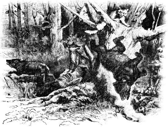 – Не плачь, зайчик! – говорят собаки. – Мы ее выгоним.