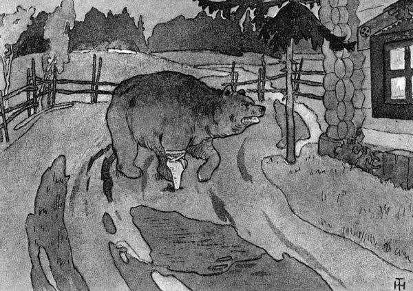 Старик взял да и отсек медведю топором лапу; ушел домой с лапой и отдал старухе:
