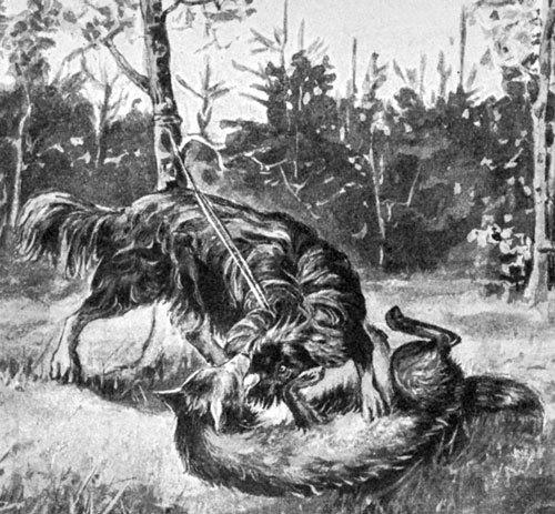 – Ах ты, мерзкий кобель, – сказал серый волк, – смеешь ты меня бранить? – и тут же бросился на собаку и хотел ее разорвать.