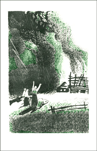 Вдруг совершенно неожиданно ветер переменил направление, клубы дыма и горящие головни полетели от деревни к реке, а с тем вместе хлынул сильнейший, проливной дождь. Это было спасением для несчастной деревни. Впрочем, что я говорю спасением — и спасать-то почти уж нечего было: из всей деревни уцелели только три избы да баня, все остальное сделалось жертвою пламени.