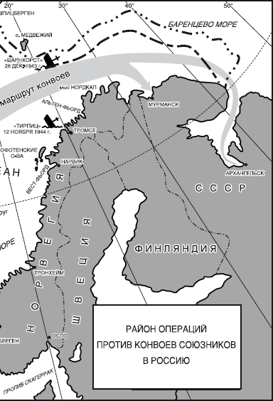 Борьба против «Тирпица» началась сразу после того, как он вступил в строй в январе 1942 г., и продолжалась вплоть до его гибели почти три года спустя. Сначала она велась в рамках операций против других больших немецких надводных кораблей, но в конце остался только «Тирпиц», несмотря на то что с географической точки зрения условия войны складывались в пользу немецкого флота. Наличие у него баз в Атлантике, как в Норвегии, так и во Франции, означало, что позиции блокады Германии в 1914–1918 гг. – в проливе Па-де-Кале и рубеж Берганд – Шетландские острова – были бесполезны.