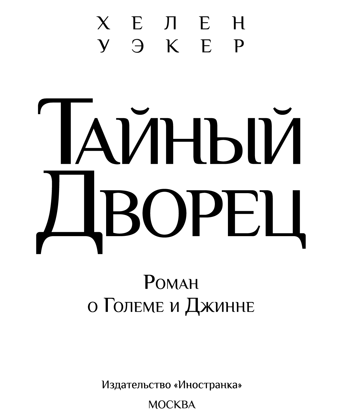 Тайный дворец : Роман о Големе и Джинне / Хелен Уэкер ; пер. с англ. И. Тетериной. — М. : Иностранка, Азбука-Аттикус, 2023. — (Большой роман).