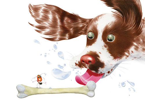 Когда муравей Геша был еще маленьким, он решил немного прогуляться и вышел с утра из муравейника. Сначала он переполз через лепесток, перебрался по травинке и прошел вдоль лесной иголки, затем поднялся на листик ландыша и огляделся. Неподалеку Геша увидел странный, незнакомый белый предмет и решил спуститься, чтобы его исследовать. Подойдя, к огромного размера куриной косточке, он взобрался на нее и почувствовал приятный аромат остатков вареного мяса. Геша вцепился клещиками и оторвал себе удобный ломтик. Сладкий вкус курочки передал радость всему телу. Но не успел еще Геша съесть первый кусочек, как всей своей спинкой ощутил дыхание горячего ветра. Муравьишка повернул голову — и, о страх и ужас, перед ним нависала огромная морда маленького щенка.