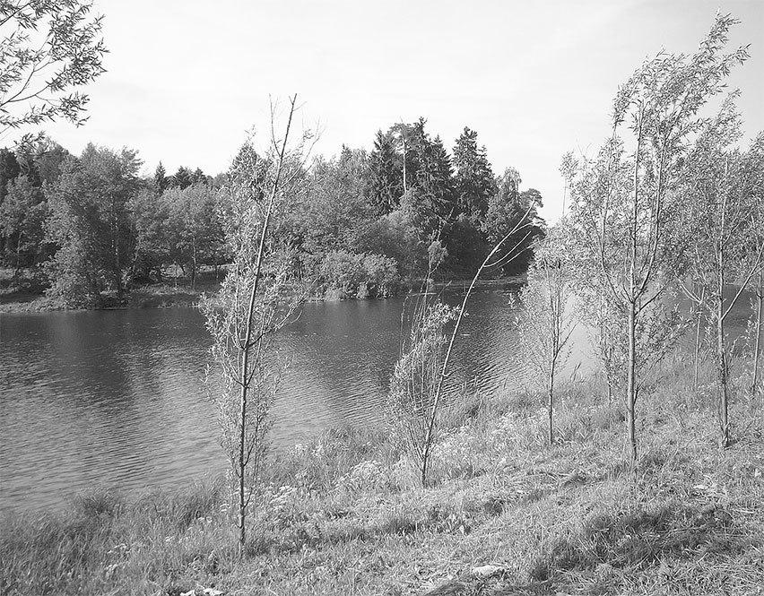 «Зерцало вод» представляло собой пруд, образованный благодаря плотине на речке Захаровке. Около воды некогда стояла огромная липа и около нее – полукруглая скамейка. Это и было любимым местом Пушкина-мальчика. Здесь, среди обаятельной подмосковной природы, в деревенской тиши, впервые проявился его могучий гений. Говорят, что березы, окружавшие старую липу, все были исписаны стихами юного поэта…»