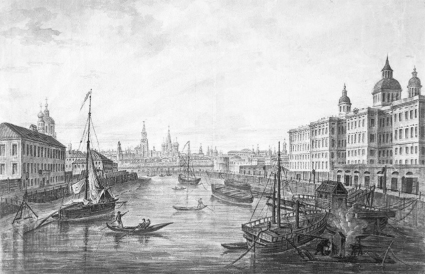 В далекие времена Москва-река была несравненно полноводнее нынешней и в отдельных местах своего течения достигала ширины до двух верст. Так, газета «Московские ведомости» от 11 апреля 1908 года сообщала: «…разлив Москвы-реки был необычайным. Вода, прибывающая с неимоверной быстротой, вышла из берегов и затопила все Дорогомилово, местность ниже Бабьегородской плотины – по Берсеневской и Кремлевской набережным, а также Александровский сад. Из Водоотводного канала она выливалась на Якиманку. Снесены ледоходом ферма с двумя устоями Комиссариатского моста, который в середине обрушился, ледорез у Малого Краснохолмского моста. От Большого Каменного до Чугунного моста залиты на 1,5 аршина набережные. Езда по конно-железной дороге и на лошадях прекра щена».