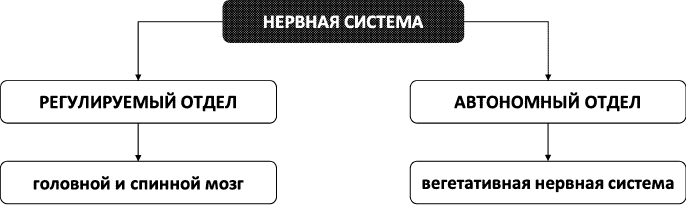 Чтобы вступить на путь постепенного преодоления разных проявлений стресса, важно понимать физиологические законы их функционирования. Любые техники и упражнения представляют собой лишь следствие этого понимания и, укрепляя теоретический фундамент, позволяют кирпичик за кирпичиком выстраивать здание счастливой жизни без избыточных стрессовых переживаний. Для начала нам нужно вспомнить о том, что у каждого из нас есть такая прекрасная вещь, как нервная система. «Ну ничего себе прекрасная! – сразу же воскликнут некоторые читатели. – У кого-то, может быть, и прекрасная, но моя нервная система давно порвалась на тряпки!» Не торопитесь вешать свою нервную систему на гвоздь или задвигать на антресоли. Она вам ещё пригодится. Но, чтобы всякий раз, образно говоря, не рвать её на британский флаг, необходимо понимать, как она всё-таки устроена. Итак, наша всё ещё прекрасная нервная система состоит из двух отделов – регулируемого (он включает в себя головной и спинной мозг и позволяет человеку свободно совершать контролируемые действия) и автономного (этот отдел самостоятельно регулирует работу внутренних органов и секреций и не зависит от желаний человека) (см. рис. 1).