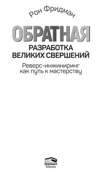 Обратная разработка великих свершений : реверс-инжиниринг как путь к мастерству / Р. Фридман ; пер. с англ. П. А. Самсонова. — Минск : Попурри, 2021.