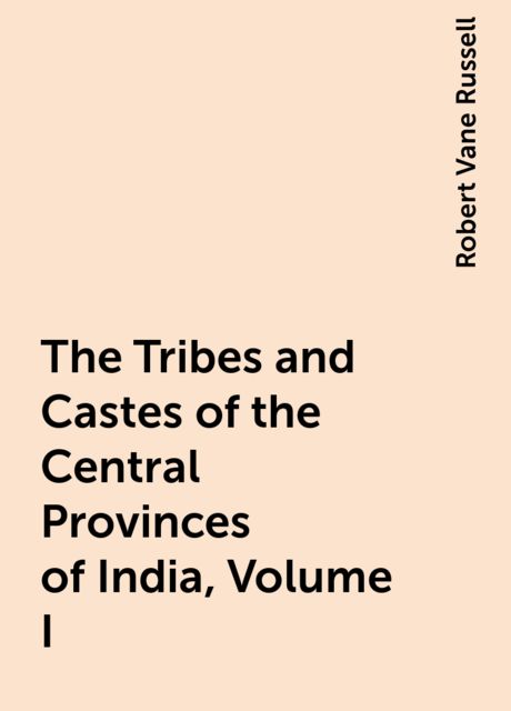 This book is the result of the arrangement made by the Government of India, on the suggestion of the late Sir Herbert Risley, for the preparation of an ethnological account dealing with the inhabitants of each of the principal Provinces of India. The work for the Central Provinces was entrusted to the author, and its preparation, undertaken in addition to ordinary official duties, has been spread over a number of years. The prescribed plan was that a separate account should be written of each of the principal tribes and castes, according to the method adopted in Sir Herbert Risley's Tribes and Castes of Bengal. This was considered to be desirable as the book is intended primarily as a work of reference for the officers of Government, who may desire to know something of the customs of the people among whom their work lies. It has the disadvantage of involving a large amount of repetition of the same or very similar statements about different castes, and the result is likely therefore to be somewhat distasteful to the ordinary reader. On the other hand, there is no doubt that this method of treatment, if conscientiously followed out, will produce more exhaustive results than a general account. Similar works for some other Provinces have already appeared, as Mr. W. Crooke's Castes and Tribes of the North-Western Provinces and Oudh, Mr. Edgar Thurston's Castes and Tribes of Southern India, and Mr. Ananta Krishna Iyer's volumes on Cochin, while a Glossary for the Punjab by Mr. H.A. Rose has been partly published. The articles on Religions and Sects were not in the original scheme of the work, but have been subsequently added as being necessary to render it a complete ethnological account of the population. In several instances the adherents of the religion or sect are found only in very small numbers in the Province, and the articles have been compiled from standard works.