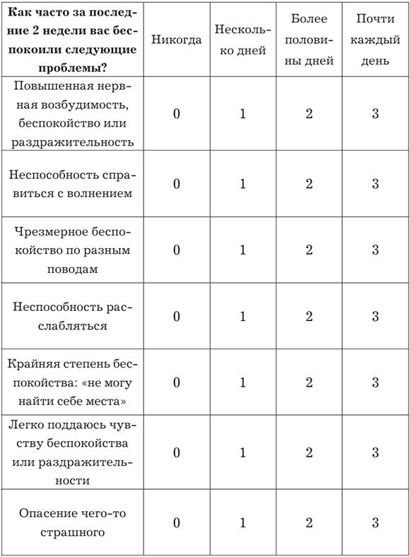 Все любят тесты – они позволяют быстро провести диагностику. Один из самых полезных и понятных тестов при работе с тревогой называется «Опросник генерализованного тревожного расстройства», ГТР-7 (или GAD-7, General Anxiety Disorder-7).