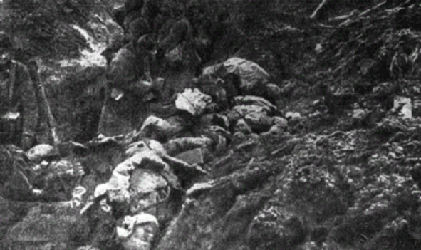 «Издержки» войны: убитые французские солдаты на передовой в районе Вердена. Фотография, 1915 г. Февраль 1916 года