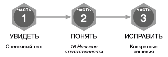 Назначение этой книги отвечает ее названию — помочь вам пройти три пути: исправить культуру ответственности, развить чувство причастности и наладить взаимодействие. Мы старались сделать так, чтобы книга читалась быстро, главы были содержательными и краткими, а информация — конкретной и полезной. Часть 1 начинается с оценки ситуации — вы определите, что нужно исправить в первую очередь. Часть 2 знакомит вас с 16 Навыками ответственности и результатами исследования ответственности в работе. В части 3 представлены практические, проверенные решения, которые позволят исправить недостатки культуры ответственности у вас лично, в вашей команде или во всей вашей организации.