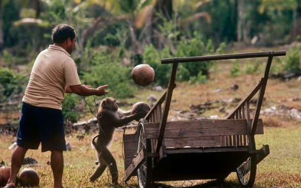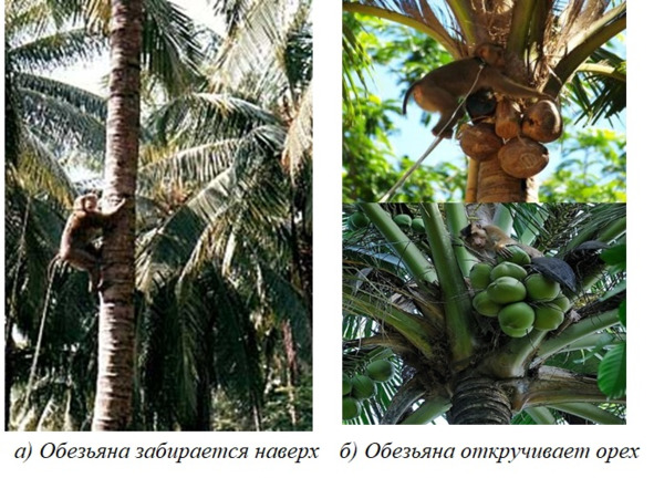 Рис. 1.9. Обезьяна укладывает сорванные плоды в тележку