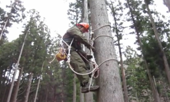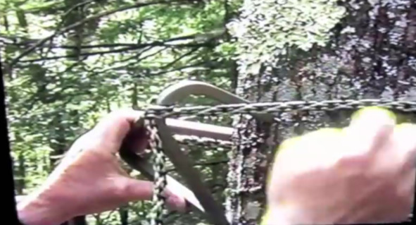 Михаил: Для безопасности нужно пристегнуться к стволу дерева ремнём.