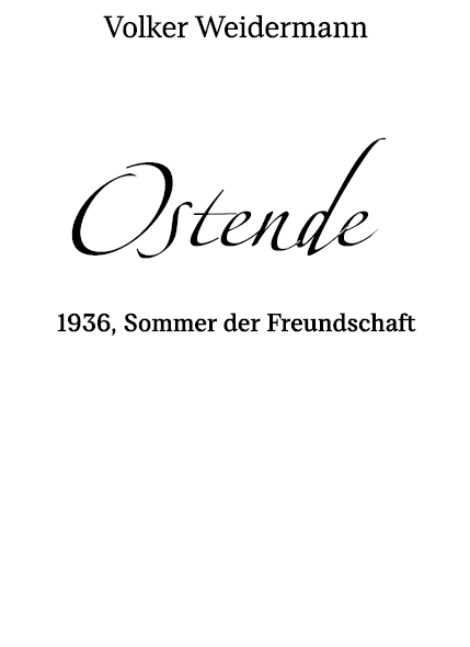 Биографический роман «Остенде. 1936 год: лето дружбы и печали» появился в 2014 году. Остенде – блистательный морской курорт, на котором в 1936 году собрались писатели, журналисты, издатели, поэты – все те, кому нет места в национал-социалистической Германии. Солнце, море, напитки. Это могло бы стать просто отдыхом с друзьями. Если бы не политическая ситуация, которая ухудшается с каждым днем, если бы их всех не преследовали, если бы их книги не были запрещены, если бы они не потеряли Родину. Поэты в бегах, писатели в изгнании. Фолькер Вайдерманн точно и проникновенно рассказывает историю того удивительного лета незадолго до Второй мировой войны, когда цвет немецкой творческой интеллигенции празднует жизнь (у большинства из них она скоро оборвется), как это могут делать только полностью отчаявшиеся люди.