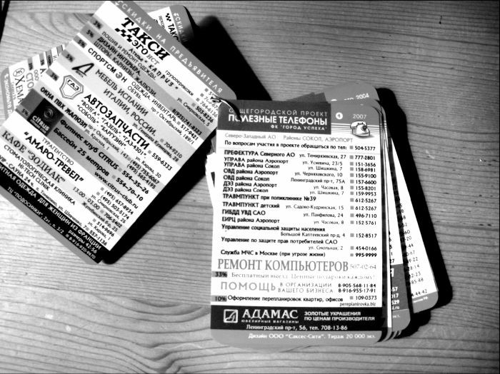 У вас нарабатываются контакты с огромным количеством предпринимателей совершенно различных направлений. Я, например, теперь лечу зубы у знакомого директора стоматологии, который размещал в нашем проекте «Полезные телефоны» свой рекламный блок. Так же появляются знакомые юристы, директора салонов красоты, агентств недвижимости, фотоуслуг, химчисток и так до бесконечности.