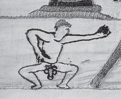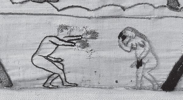 Рис. 1.75 Изображение Солнца (в виде мужчины с красными, горящими руками) и Венеры (в виде женщины) на нижней кайме листа 14 ковра из Байе. Взято из [138].
