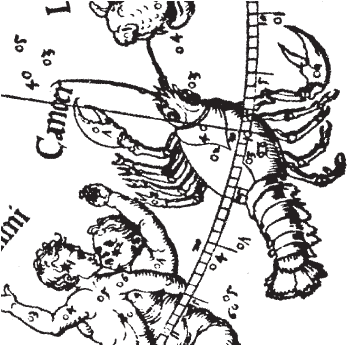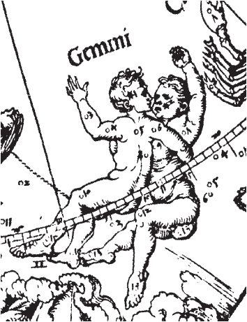 Рис. 1.43 Зодиакальное созвездие Близнецов на звездной карте А. Дюрера. Взято из [21], с. 8, илл. 1.
