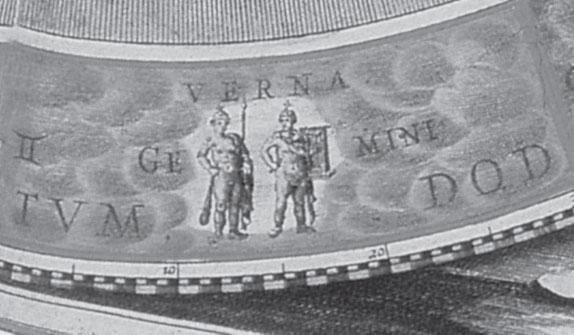 Рис. 1.44 Зодиакальное созвездие Близнецов из старинного «Атласа» Целлариуса. Близнецы изображены как римские воины, в тяжелом вооружении. Взято из [147], с. 9.