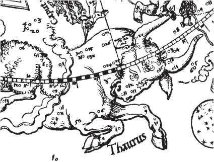 Рис. 1.46 Зодиакальное созвездие Тельца на звездной карте А. Дюрера. Взято из [21], с. 8, илл. 1.