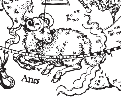 Рис. 1.49 Зодиакальное созвездие Овна на звездной карте А. Дюрера. Взято из [21], с. 8, илл. 1.