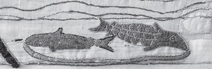 Рис. 1.50 Изображение созвездия Рыб на нижней кайме ковра из Байе. Взято из [138], лист 19.