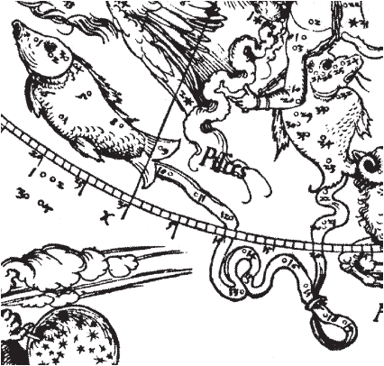 Рис. 1.51 Зодиакальное созвездие Рыб на звездной карте А. Дюрера. Взято из [21], с. 8, илл. 1.