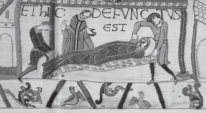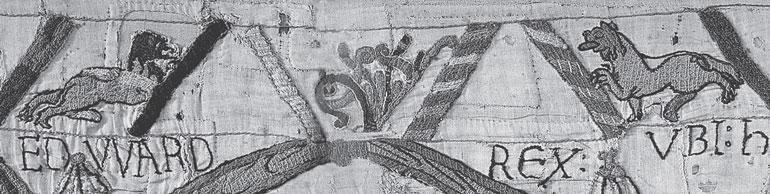Рис. 1.65 Сложный узор, которым, вероятно, вышивальщицы ковра из Байе изобразили созвездие Скорпиона. Здесь же показана смерть короля Эдварда. Взято из [138], лист 30, нижняя кайма.