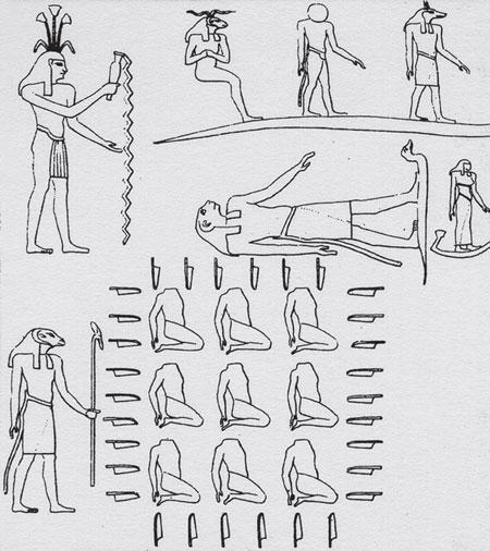 Итак, Солнце на данном зодиаке определяется достаточно уверенно. Более того, если попытаться отождествить Солнце с другой обнаженной фигурой, то возникает не очень понятная маленькая «плането-подобная» фигурка в Близнецах. Смысл которой понятен при нашем отождествлении, но «повисает в воздухе» при любом другом отождествлении Солнца.