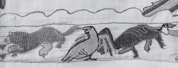 Рис. 1.59 Изображения созвездия Орла и некоего животного рядом с ним (вероятно, созвездия Козерога) на ковре из Байе, лист 20, нижняя кайма. Взято из [138], лист 20.