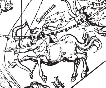 Рис. 1.61 Зодиакальное созвездие Стрельца на звездной карте А. Дюрера. Взято из [21], с. 8, илл. 1.