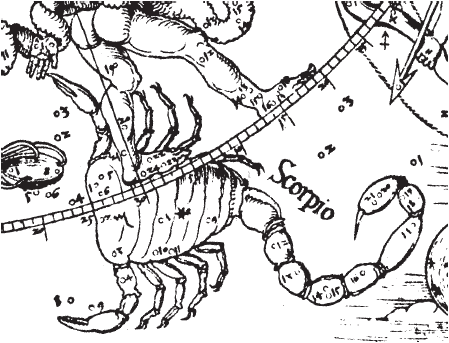 Рис. 1.64 Зодиакальное созвездие Скорпиона на звездной карте А. Дюрера. Взято из [21], с. 8, илл. 1.