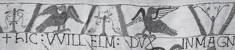 Считается, что изображения на ковре из Байе связаны с событиями, приведшими к нормандскому (норманнскому) вторжению в Англию. Решающее сражение, обеспечившее победу завоевателям, произошло якобы в 1066 году при Гастингсе (Hastings). Считается, что на ковре отражены события от 1064 года до 14 октября 1066 года. ГЛАВНЫМИ ГЕРОЯМИ этих событий, противостоящими друг другу, являются Гарольд (Harold) и Вильям (Вильгельм) Нормандский Завоеватель Бастард (William of Normandy, the Conqueror, the Bastard) [160], с. 197; и [10]. Имя «Бастард» означает «Незаконнорожденный».