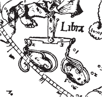 Рис. 1.71. Зодиакальное созвездие Весов на звездной карте А. Дюрера. Взято из [21], с. 8, илл. 1.
