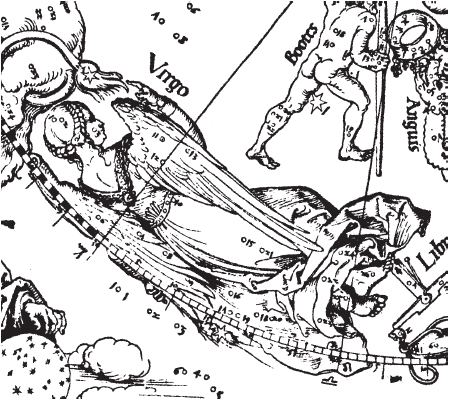 Рис. 1.74 Зодиакальное созвездие Девы на звездной карте А. Дюрера. Взято из [21], с. 8, илл. 1.