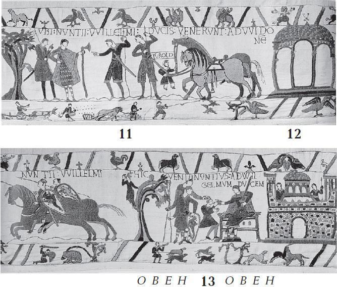 Следовательно, созвездие Овна показано на листах 12–13 ковра из Байе, вверху.