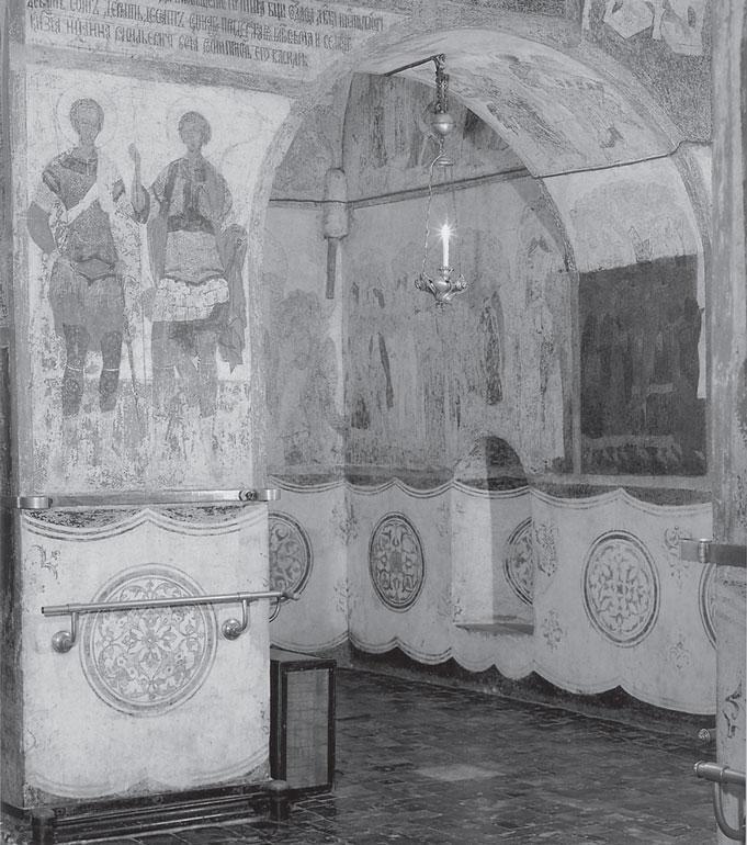 Рис. 1.24 Благовещенский Собор Московского Кремля. Изображение длинного полотенца-рушника, опоясывающего внутреннее помещение храма, а также его колонны. Взято из [142].
