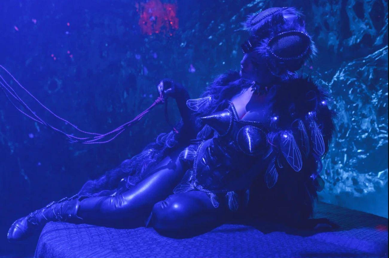 «Глаз мухи состоит из множества мельчайших частиц — фасеток, а образ нашей Мухи соткан из мельчайших мух, поскольку она Повелительница», — объясняет Марк Ли. По его задумке, должен был получиться образ агрессивной, воинственной эротики, но не порнографии. Главным референсом стал костюм Жан-Поля Готье для Мадонны с конусообразным лифом. «Укрывалась Муха плащом, который состоит из 120 мелких крыльев. Их делали из прозрачного винила, на который фотопечатью перенесли рисунок крыла мухи, провели светодиоды и спрятали в мех». На создание этого костюма ушло около месяца.