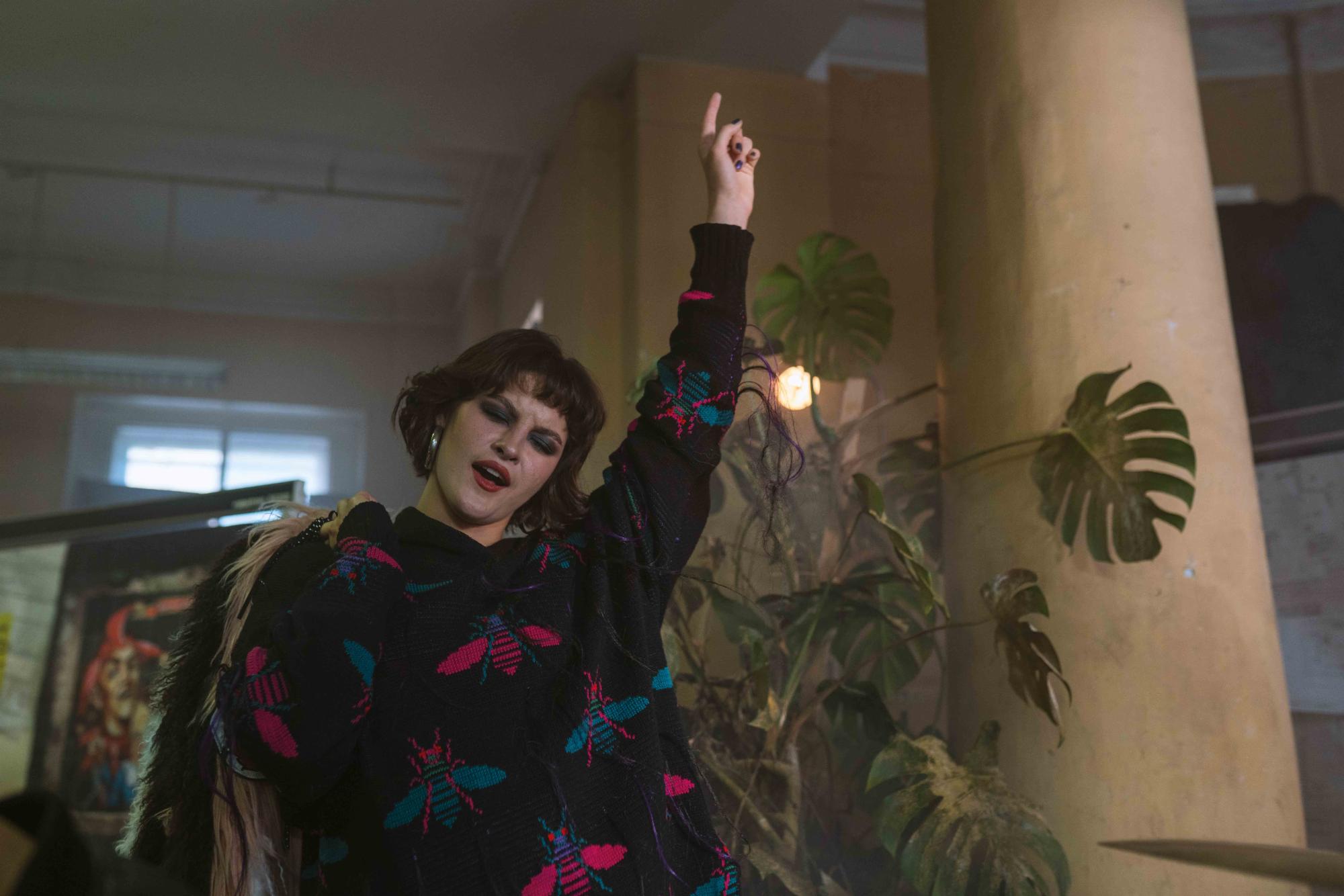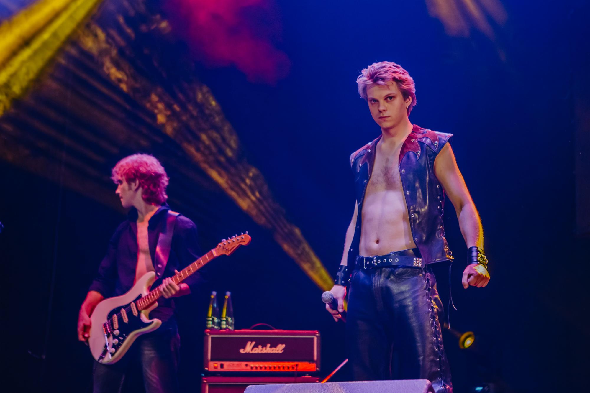 На сцене исполнители главных ролей выглядят сыгранной группой. К нашему огромному удивлению, выясняется, что профессионально музыкой занимается только Васса Бокова, выпустившая недавно дебютный альбом. «Я не учился в музыкальной школе, но во время учебы во ВГИКе занимался вокалом, там это часть процесса», — признается Влад Коноплев. У Константина Плотникова похожая история: «Театральная академия — вот мой бэкграунд. Там и петь нужно, и инструмент в руки брать. К тому же у нас было такое задание, как музыкальное наблюдение. На нем студенты учатся снимать движения певца или музыканта. Здесь это очень пригодилось. Ну, и на вокал я начал дополнительно ходить после утверждения на роль».