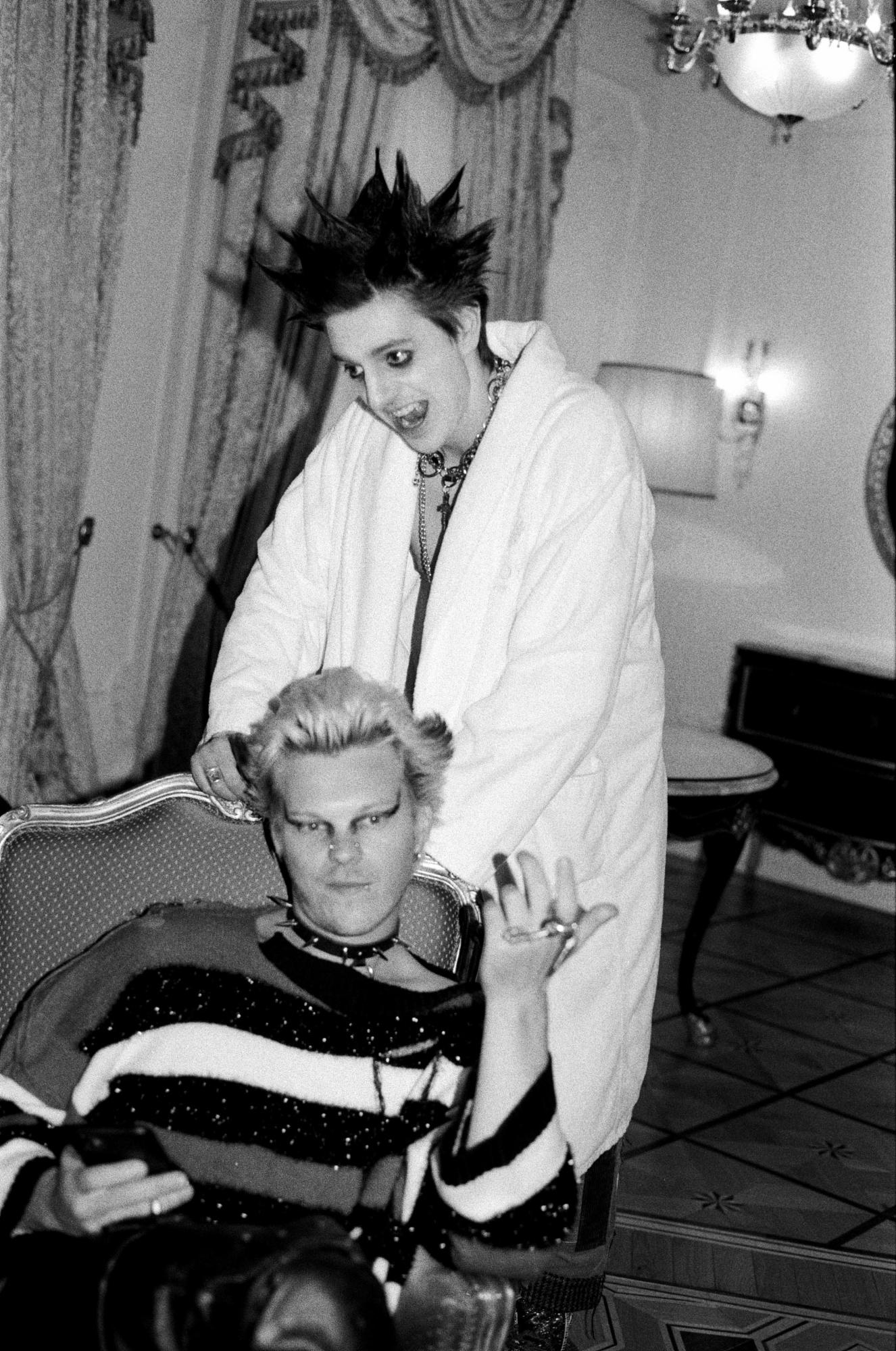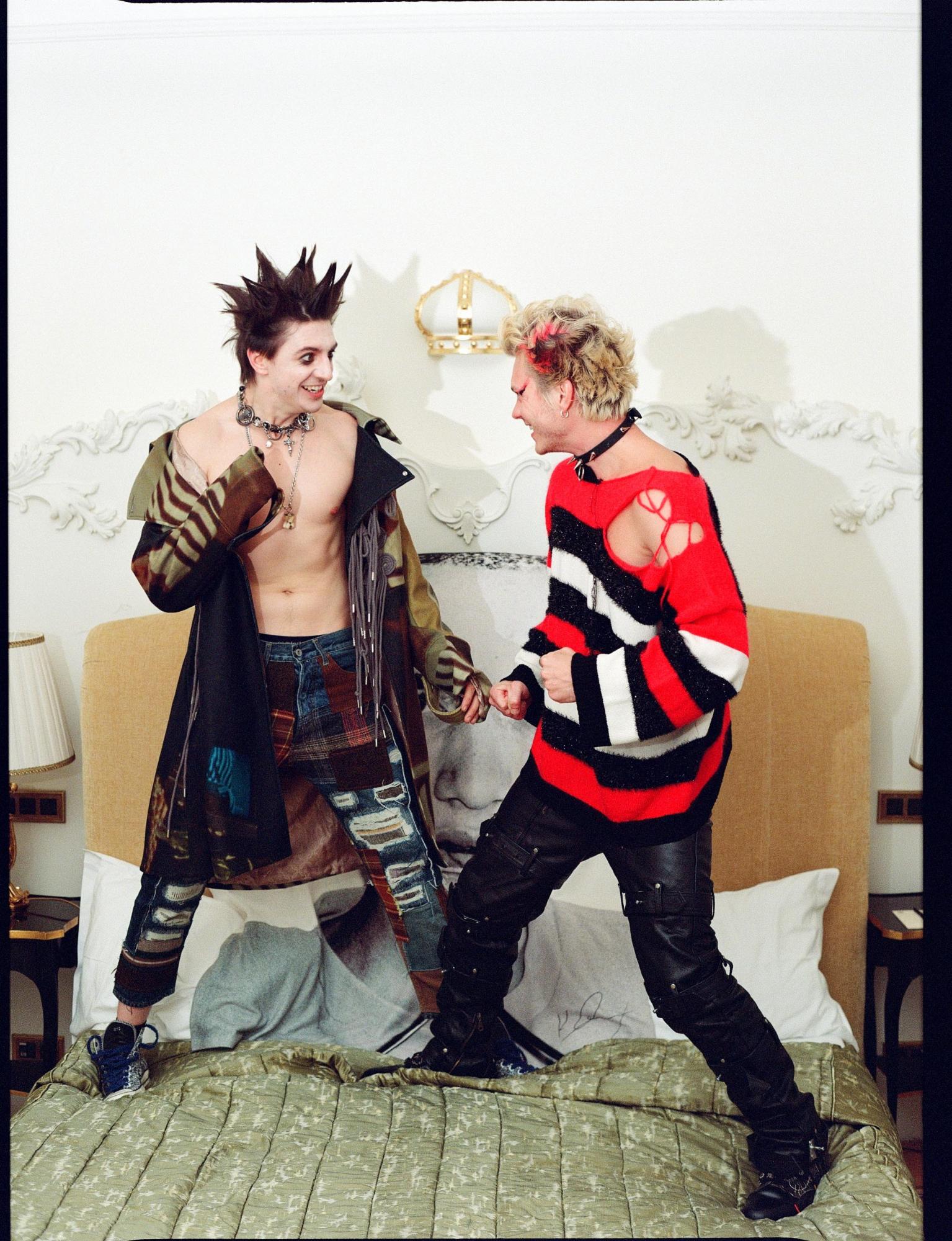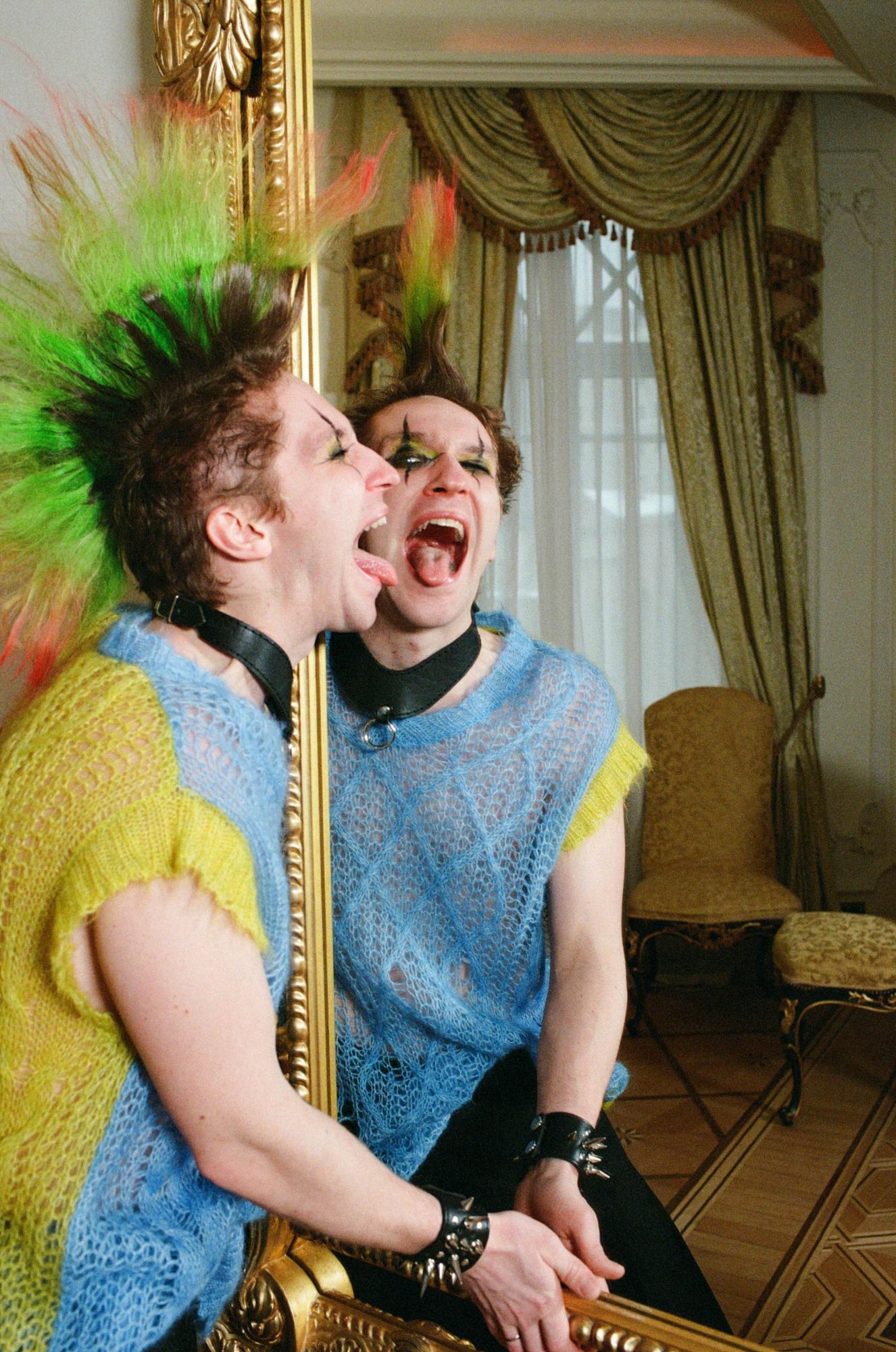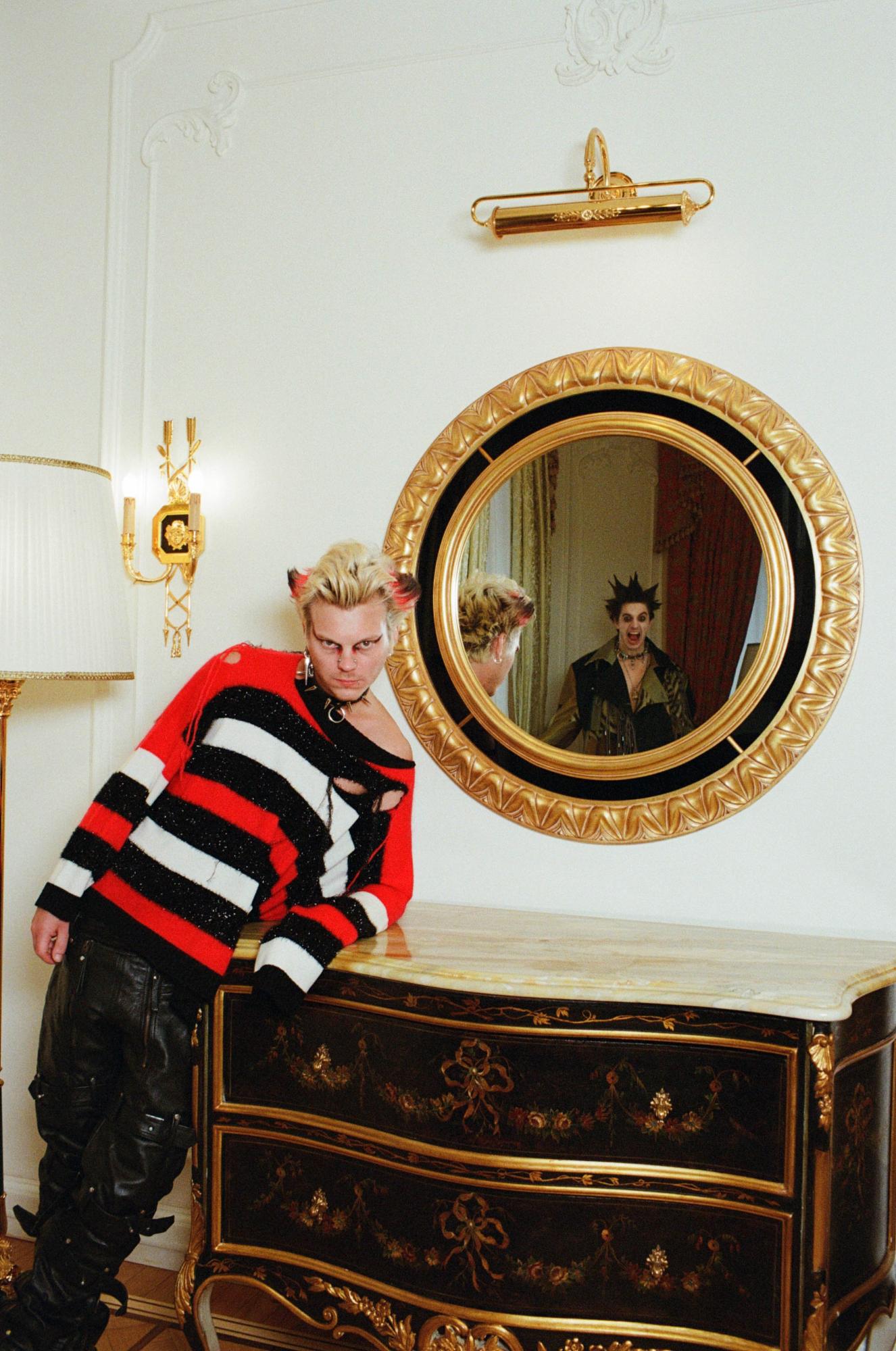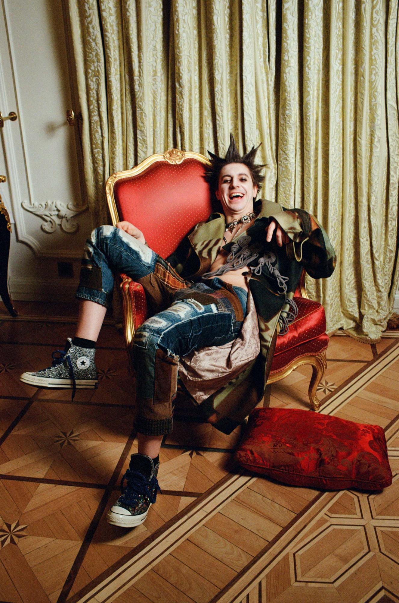 Для этого журналистка Юля Рузманова провела десятки часов интервью с участниками группы и близкими музыкантов и создала лонгрид, который стал самым большим в истории медиа Кинопоиска (кстати, версия для Яндекс Книг еще чуть больше). Константин Плотников, сыгравший Горшка, рассказал нам, как несколько месяцев вживался в роль: смотрел все видео выступлений «Короля и Шута», которые смог найти, читал любимые книги музыканта, общался с его знакомыми, ходил его маршрутами и, по слухам, даже на несколько минут серьезно задумался, когда режиссер Рустам Мосафир в шутку предложил ему удалить два передних зуба. Плотникова в образе Горшка вместе с Владом Коноплевым, исполнившем роль Князя, и остальными актерами, сыгравшими участников «Короля и Шута», мы сфотографировали в номере отеля Savoy, превратив в современных панков; бывшему главреду журнала The Rolling Stone они рассказали, что они думают об этой субкультуре. И, конечно, мы не могли пропустить главного трикстера — Шута в исполнении Евгения Ткачука: он на этих страницах вспрыгнет аж дважды.