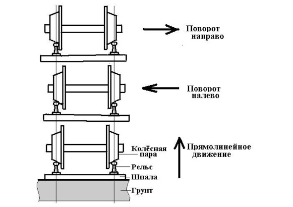 - 49. Каким образом поезд проходит поворот без скрипа и скольжения: ведь, колёсная пара, — это два колеса, глухо насаженных на одну ось, а при повороте одно колесо должно пройти большее расстояние, чем другое?