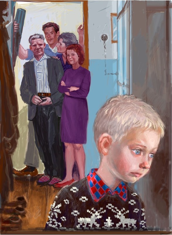 Я быстро стал собирать холодный борщ в кастрюлю ладошками. Но некогда красивая жижа мне никак не поддавалась. «Вот-вот бабушка придёт, а борщ всё продолжает растекаться по полу», — в волнении думал я. Мои скользкие ладошки сильно пахли борщом. Я вытер их о кухонное полотенце. Запах никуда не делся, а на полотенце появились предательские оранжевые пятна. «Раз оно уже в борще, хуже не будет», — подумал я и мигом вытер им жирное пятно с пола. Грязное полотенце я ловко запихнул под диван. «Там темно, не найдут. Да и кроме меня туда никто не залезет», — решил я и встал в угол.