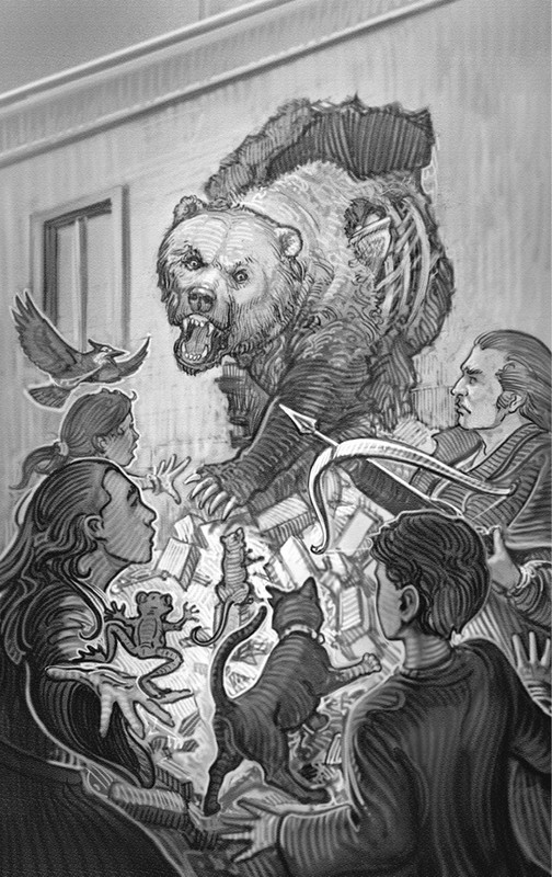 И вдруг ближайшая стена проломилась. Через дыру, раскидывая камни, ввалился медведь-мертвец. В боку у него зияла огромная дыра, и оттуда во все стороны хлестал желудочный сок. Намерения у медведя были явно не мирные.