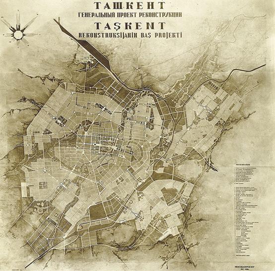 Новый генплан Ташкента, разрабатываемый с конца 1950-х годов, создавался на системной четырехступенчатой основе. Несколько жилых групп образовывали микрорайон, несколько микрорайонов — жилой район, несколько жилых районов — планировочный район, с подчинением единице каждого уровня унифицированного набора культурных, социальных, бытовых и других объектов и служб. Новыми планировочными районами Ташкента были задуманы Чиланзар, Каракамыш, Юнусабад, Сергели и т. д. В городе начали действовать железобетонные комбинаты, возводившие жилые микрорайоны по лицензионной технологии французского инженера Раймона Камю. Особое значение в этой унифицированной системе имел городской транспорт. Его разработка, включавшая скоростные магистрали и линии метро, стала составной частью генерального плана. Кульминацией этой работы стали два всесоюзных конкурса: на центр Ташкента, который был выделен в особый планировочный район (этот конкурс выиграли архитекторы института Ташгипрогор), и на застройку центральной площади Ташкента (здесь победителями стали бригады Ташгипрогора и московского ЦНИИЭП зрелищных зданий и спортивных сооружений). Идея победившего проекта центра Ташкента заключалась в пробитии пешеходной зеленой эспланады, соединявшей ядра «нового» и «старого» города — сквер Революции и площадь Чорсу. В пространстве эспланады предполагали возвести свободно размещенные в зелени уникальные объекты республиканского и городского культурного и административного назначения.