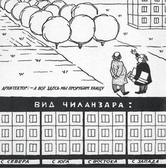 Карикатуры из журнала «Строительство и архитектура Узбекистана». 1963