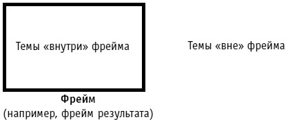 Повседневным примером использования фреймов является «временной фрейм». Поместив встречу или выполнение упражнения во фрейм десяти минут, мы в значительной мере предопределяем объем того, что нам удастся сделать в этом временном промежутке. Временные ограничения определяют объекты внимания, темы и предметы, уместные для обсуждения, а также тип и меру приложенных усилий. Совсем иную динамику задаст для той же встречи или выполнения упражнения временной фрейм размером, скажем, в час или в три часа. Краткосрочные фреймы заставляют нас концентрироваться на актуальных задачах, тогда как более долгосрочные фреймы открывают возможность параллельно развивать отношения. Если для деловой встречи установить лимит 15 минут, разговор будет почти наверняка ориентирован на конкретные задачи и едва ли превратится в исследовательский мозговой штурм без определенного итога.